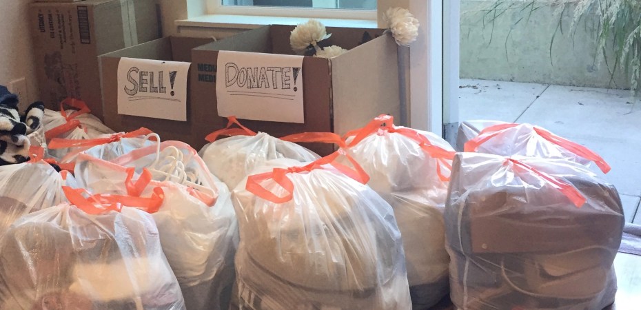 So, we’re ditching the stuff. Not all of it, but the replaceable, worn-out, unnecessary items that really pile up. I can safely say I’ve taken over 20 bags to goodwill at this point and have more trips coming! I’ve more than halved my clothing, and have been hard at work trying to pawn our old stuff off to friends and neighbors (strangers)…because who knows their neighbors anymore?! So sad! I’ve sold a few things and given away countless others, and I still have an apartment “full” of stuff! I guess whatever doesn’t get taken by the end of the month is going straight to goodwill.